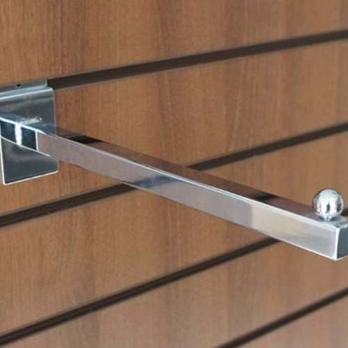 Box of 10 heavy duty forward straight arm with ball end to fit slatwall. The arm is 30cm in length and with a chrome finish.